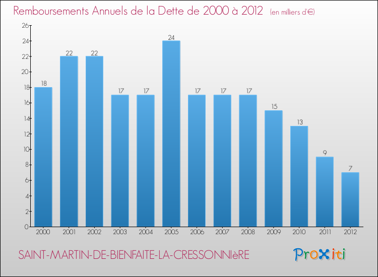 A Saint-Martin-de-Bienfaite-la-Cressonnière, ce montant de la dette est pourtant en baisse de 16.67 % par rapport à 2011.