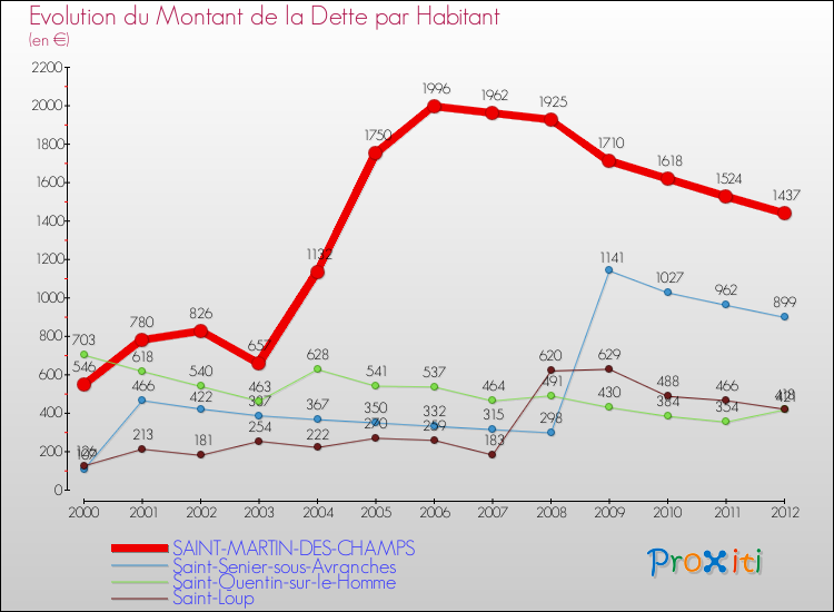 A Saint-Martin-des-Champs, la dette par habitant a donc augmenté de 163.19 % entre 2000 et 2012.