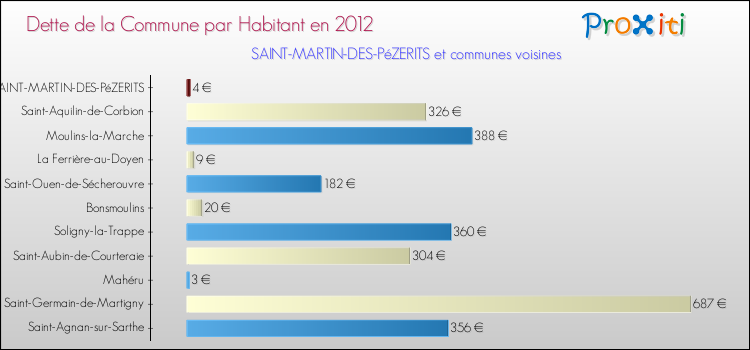 Par rapport aux 115 habitants de Saint-Martin-des-Pézerits, en 2012 le poids de cette dette représente 4 € par habitant.