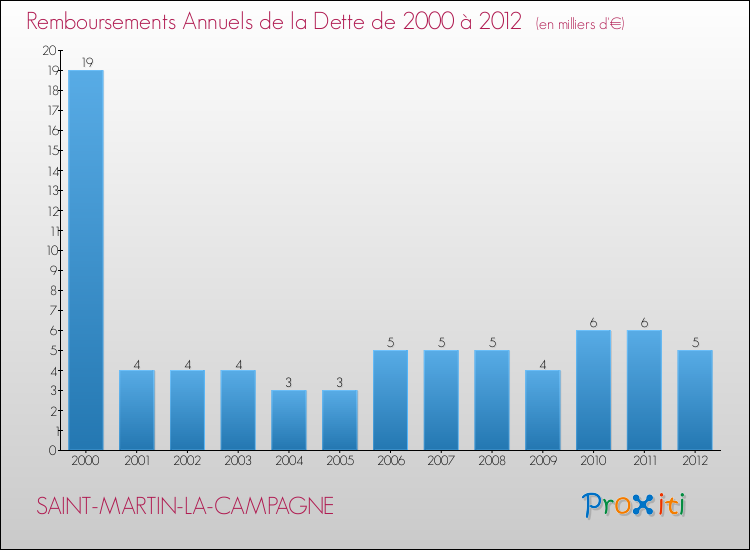 A Saint-Martin-la-Campagne, ce montant de la dette est pourtant en baisse de 9.76 % par rapport à 2011.