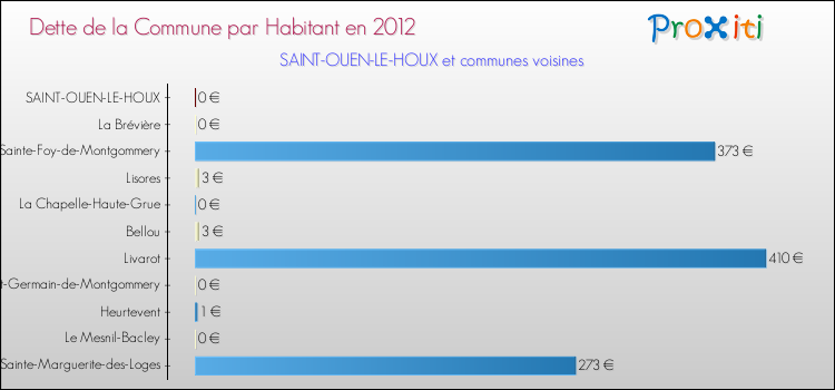 Pendant la même période, les communes françaises similaires à Saint-Ouen-le-Houx, ont vu leur dette par habitant augmenter de 25.8 % en moyenne entre 2000 et 2012.