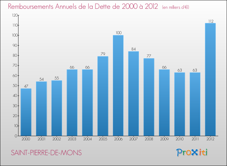 A Saint-Pierre-de-Mons, ce montant de la dette est en augmentation de 2.11 % par rapport à 2011.