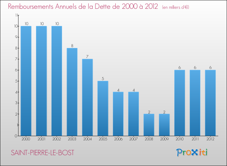 A Saint-Pierre-le-Bost, la dette par habitant a donc baissé de 14.98 % entre 2000 et 2012.