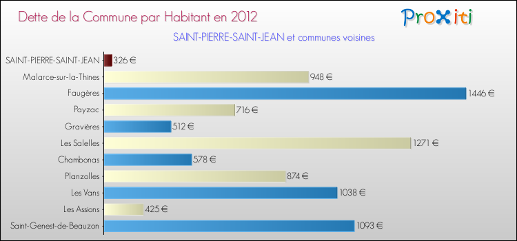 A Saint-Pierre-Saint-Jean, ce montant de la dette est pourtant en baisse de 5.66 % par rapport à 2011.
