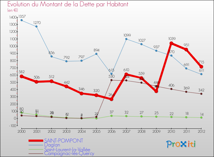 Par rapport aux 452 habitants de Saint-Pompont, en 2012 le poids de cette dette représente 715 € par habitant.