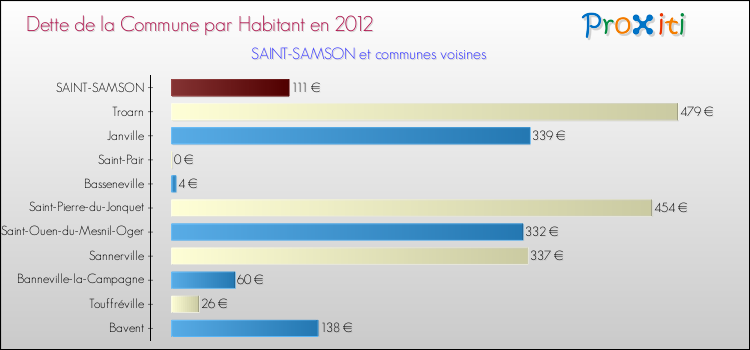 Par rapport aux 340 habitants de Saint-Samson, en 2012 le poids de cette dette représente 111 € par habitant.