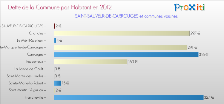 Par rapport aux 277 habitants de Saint-Sauveur-de-Carrouges, en 2012 le poids de cette dette représente 2 € par habitant.