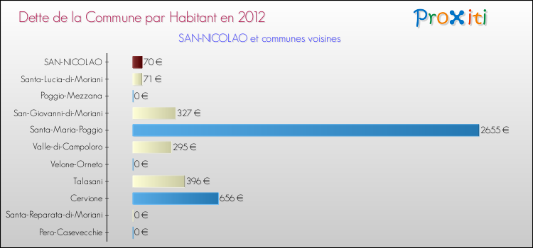 Par rapport aux 1652 habitants de San-Nicolao, en 2012 le poids de cette dette représente 70 € par habitant.