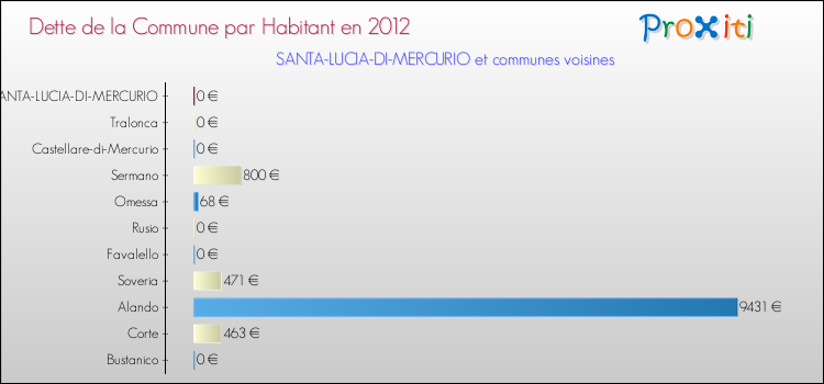 A noter : la valeur moyenne de la dette par habitant des communes françaises similaires à Santa-Lucia-di-Mercurio était de 596 € par habitant, en 2012.