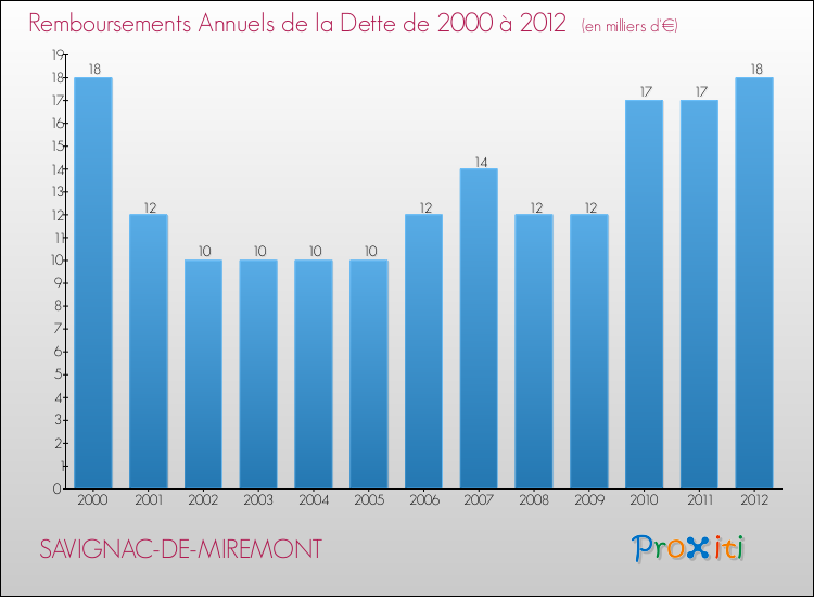 A Savignac-de-Miremont, la dette par habitant a donc augmenté de 35.71 % entre 2000 et 2012.