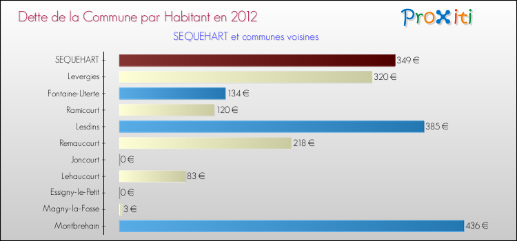 Par rapport aux 227 habitants de Sequehart, en 2012 le poids de cette dette représente 349 € par habitant.