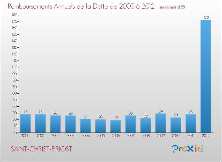 Annuités de la dette  pour SAINT-CHRIST-BRIOST de 2000 à 2012