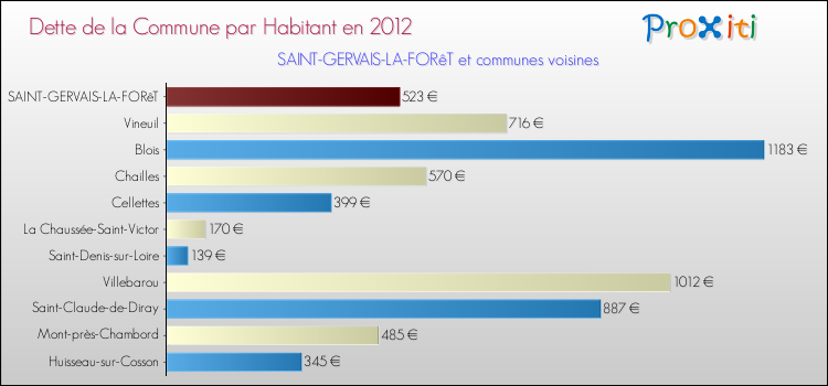 A Saint-Gervais-la-Forêt, la dette due par habitant de la commune en 2012 est donc moins élevée de 26.96 % que pour des communes similaires.