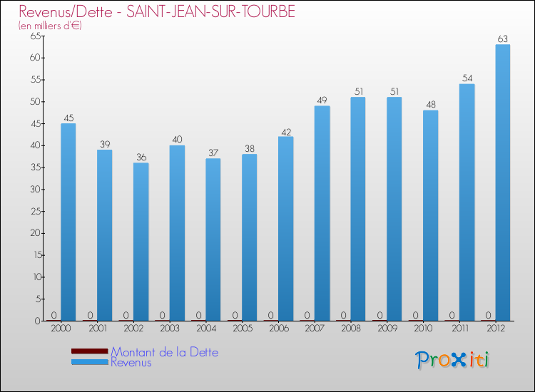Comparaison Revenus/Dette de Saint-Jean-sur-Tourbe (de 2000 à 2012)