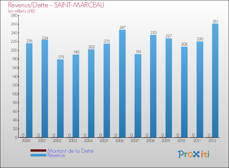 Comparaison Revenus/Dette de Saint-Marceau (de 2000 à 2012)