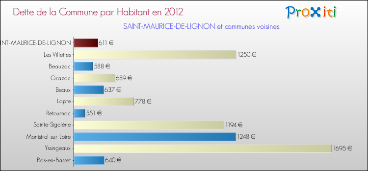 A Saint-Maurice-de-Lignon, ce montant de la dette est en augmentation de 14.86 % par rapport à 2011.