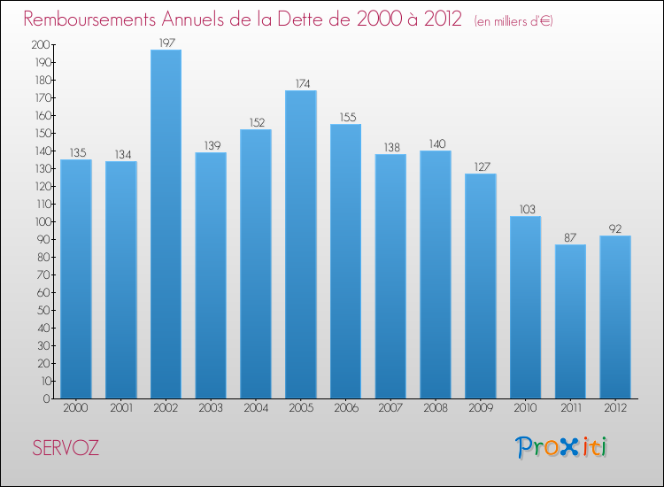 A Servoz, ce montant de la dette est en augmentation de 16.19 % par rapport à 2011.