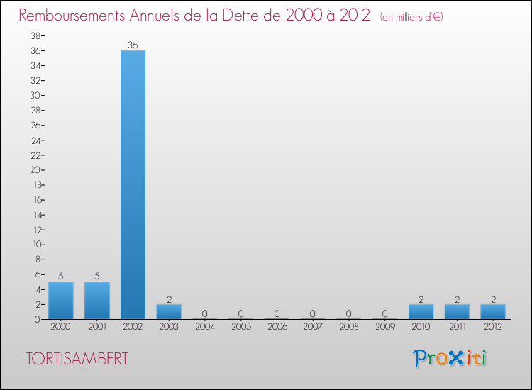 A Tortisambert, la dette par habitant a donc baissé de 8.33 % entre 2000 et 2012.