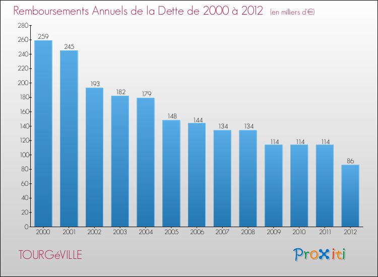 Par rapport aux 945 habitants de Tourgéville, en 2012 le poids de cette dette représente 279 € par habitant.