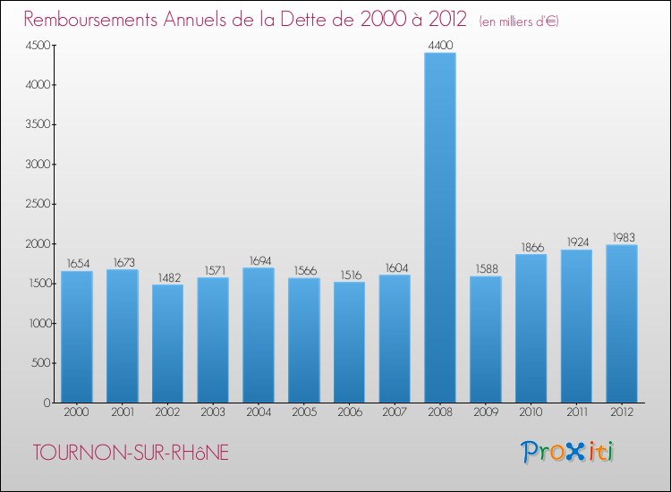 A Tournon-sur-Rhône, ce montant de la dette est en augmentation de 0.8 % par rapport à 2011.
