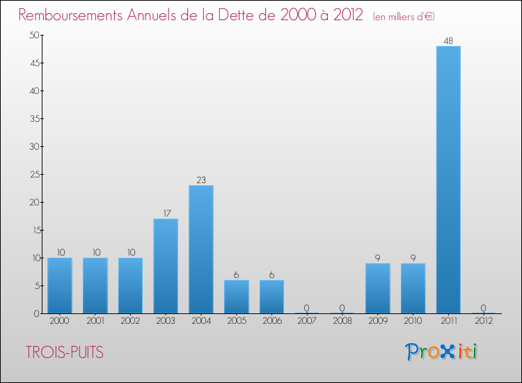 Par rapport aux 149 habitants de Trois-Puits, en 2012 le poids de cette dette représente 944 € par habitant.