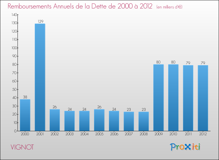 Annuités de la dette  pour VIGNOT de 2000 à 2012