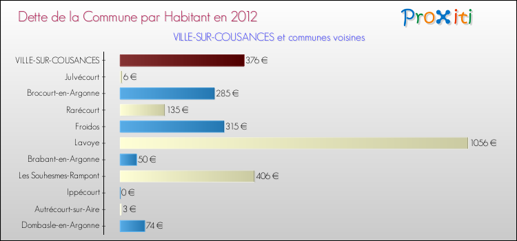 Par rapport aux 113 habitants de Ville-sur-Cousances, en 2012 le poids de cette dette représente 376 € par habitant.