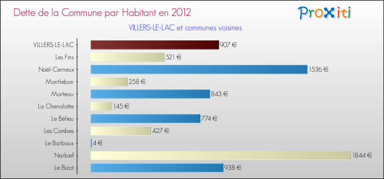 A Villers-le-Lac, la dette due par habitant de la commune en 2012 est donc plus élevée de 13.38 % que pour des communes similaires.