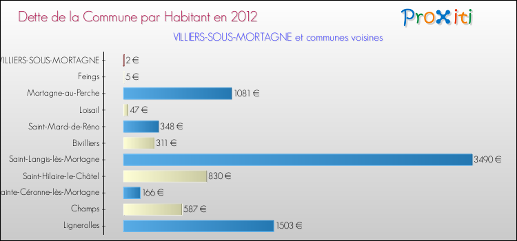 A Villiers-sous-Mortagne, la dette due par habitant de la commune en 2012 est donc moins élevée de 99.63 % que pour des communes similaires.