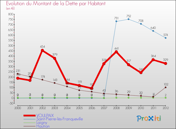 Par rapport aux 410 habitants de Voulpaix, en 2012 le poids de cette dette représente 329 € par habitant.