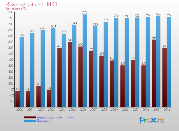 Comparaison Revenus/Dette de Étrechet (de 2000 à 2014)