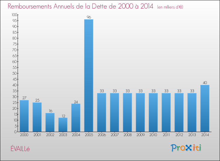 Comparaison Revenus/Dette de Évaillé (de 2000 à 2014)
