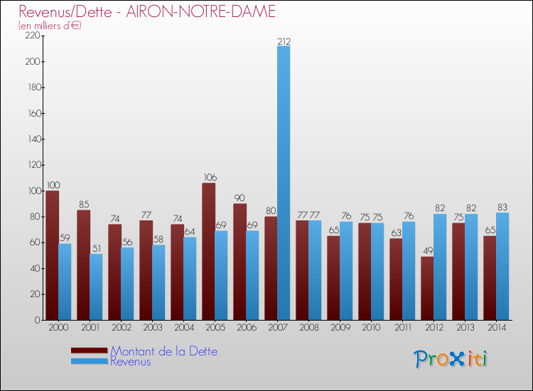 Comparaison Revenus/Dette de Airon-Notre-Dame (de 2000 à 2014)