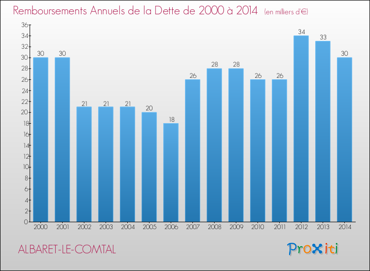 A Albaret-le-Comtal, la dette par habitant a donc baissé de 39.61 % entre 2000 et 2014.