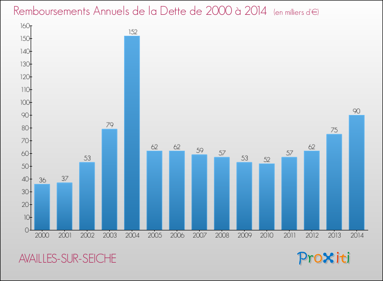 A Availles-sur-Seiche, ce montant de la dette est en augmentation de 6.05 % par rapport à 2013.