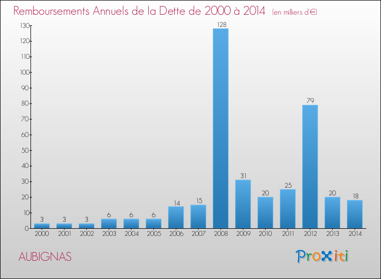 A Aubignas, la dette par habitant a donc augmenté de 211.11 % entre 2000 et 2014.