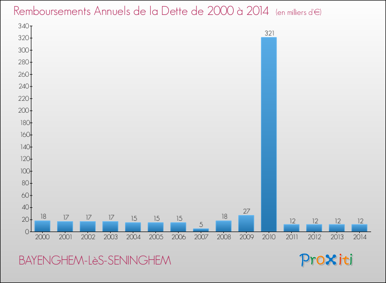 Pendant la même période, les communes françaises similaires à Bayenghem-lès-Seninghem, ont vu leur dette par habitant augmenter de 31.44 % en moyenne entre 2000 et 2014.