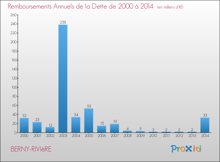 A Berny-Rivière, ce montant de la dette est en augmentation de 116.58 % par rapport à 2013.