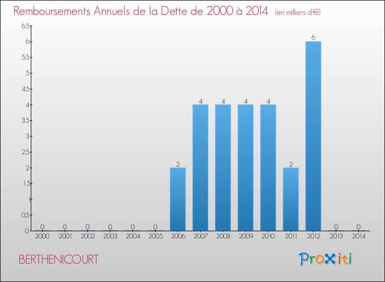 Par rapport aux 218 habitants de Berthenicourt, en 2014 le poids de cette dette représente 0 € par habitant.