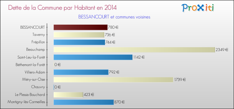 A Bessancourt, la dette due par habitant de la commune en 2014 est donc moins élevée de 10.34 % que pour des communes similaires.