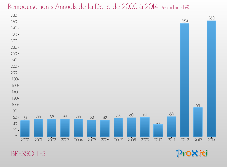 A Bressolles, la dette par habitant a donc augmenté de 37.76 % entre 2000 et 2014.