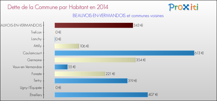 A Beauvois-en-Vermandois, la dette due par habitant de la commune en 2014 est donc moins élevée de 29.28 % que pour des communes similaires.