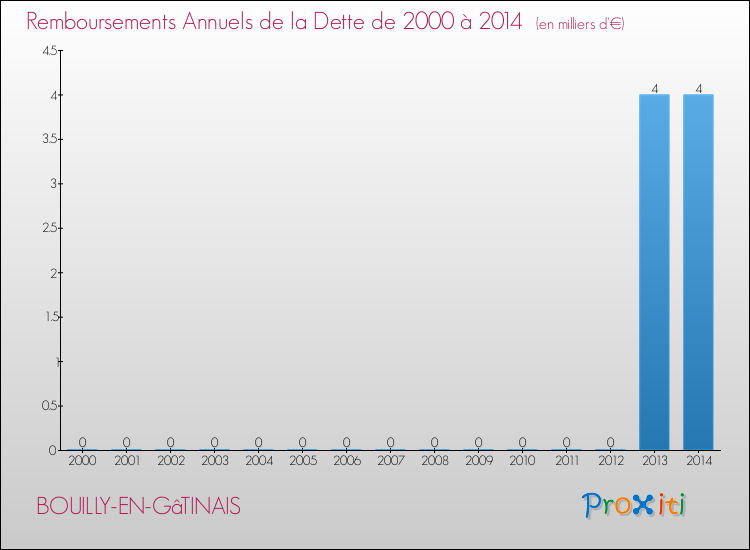 En 2014, le montant total des dettes dûes par la commune de Bouilly-en-Gâtinais était de :