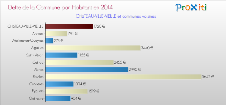 A noter : la valeur moyenne de la dette par habitant des communes françaises similaires à Château-Ville-Vieille était de 552 € par habitant, en 2014.