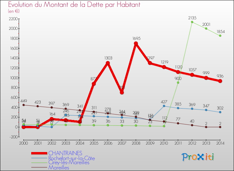 Par rapport aux 224 habitants de Chantraines, en 2014 le poids de cette dette représente 936 € par habitant.