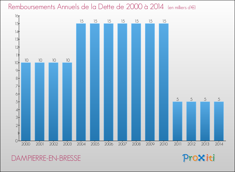 A Dampierre-en-Bresse, la dette par habitant a donc baissé de 80.47 % entre 2000 et 2014.