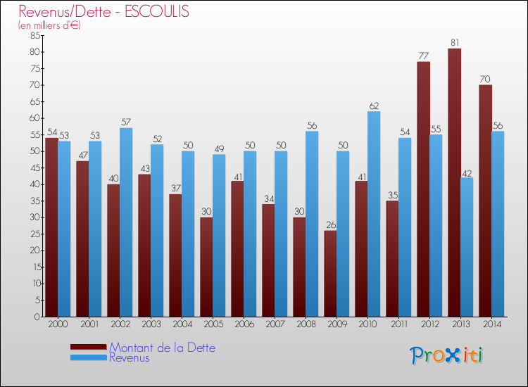 Comparaison Revenus/Dette de Escoulis (de 2000 à 2014)