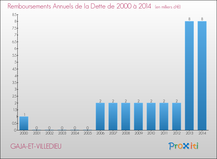 A Gaja-et-Villedieu, ce montant de la dette est en augmentation de 129.03 % par rapport à 2013.