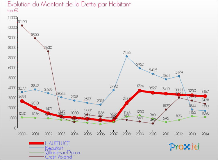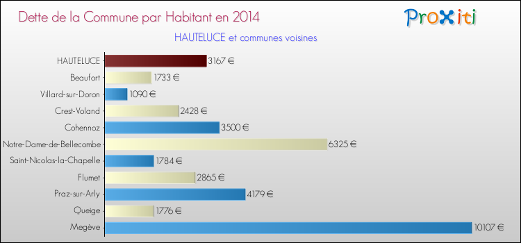 Par rapport aux 832 habitants de Hauteluce, en 2014 le poids de cette dette représente 3167 € par habitant.