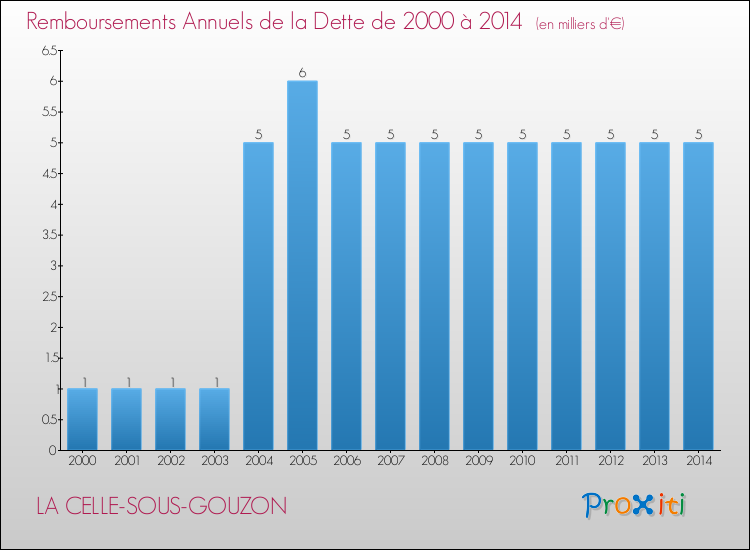 A La Celle-sous-Gouzon, ce montant de la dette est pourtant en baisse de 35.29 % par rapport à 2013.